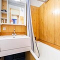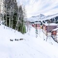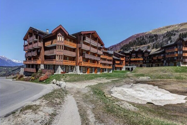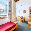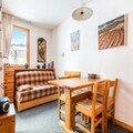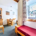 The apartment features a living area with a convertible sofa bed, two single beds, a well-equipped kitchen, a bathroom with a bathtub, and a separate WC. Guests can enjoy a private balcony with mountain views, perfect for unwinding after a day of activities. Ski-in, ski-out access via the Lanchettes chairlift allows for easy access to the slopes, making it a fantastic choice for winter sports enthusiasts. In addition, the residence offers amenities such as a ski locker, raclette machine, and flat-screen TV.