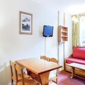 A property with a charming atmosphere, this well-maintained vacation rental accommodates a family or group looking for a relaxing mountain retreat. Featuring a spacious living area with two single beds that can double as pull-outs, the accommodation offers a comfortable and flexible sleeping arrangement for up to four people. The living space is enhanced by a fully equipped kitchen area and a separate bathroom with a bathtub and additional WC for convenience. Guests can unwind in the living room, with its television and movable partition that divides the dining and living areas for added comfort. This pet-friendly accommodation is well located in the family-friendly La Forêt district, offering proximity to nearby shops and the ski lifts. End-of-stay cleaning and bed linens are available for an extra fee.