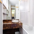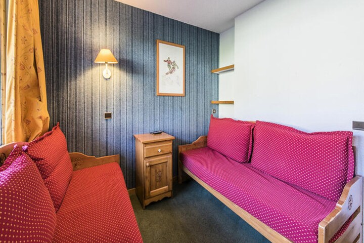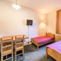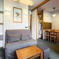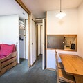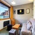 This property, along with its spacious layout, provides a comfortable studio-style apartment ideal for up to 4 guests. The living area features 2 sofa beds and a BZ sofa for additional sleeping arrangements. A dining table with seating for three, including a bench, complements the living space. The apartment includes a separate bathroom with a bathtub and a WC. Located on the ground floor, the apartment has direct access to the slopes and the ESF, making it perfect for winter sports enthusiasts. The property is pet-friendly, with additional charges, and provides optional services like a baby kit (subject to availability) and WiFi for an extra fee. While activities like skiing are included due to the ski-in/ski-out access, other amenities and services such as bed linen and cleaning are available at an extra charge.