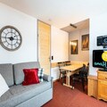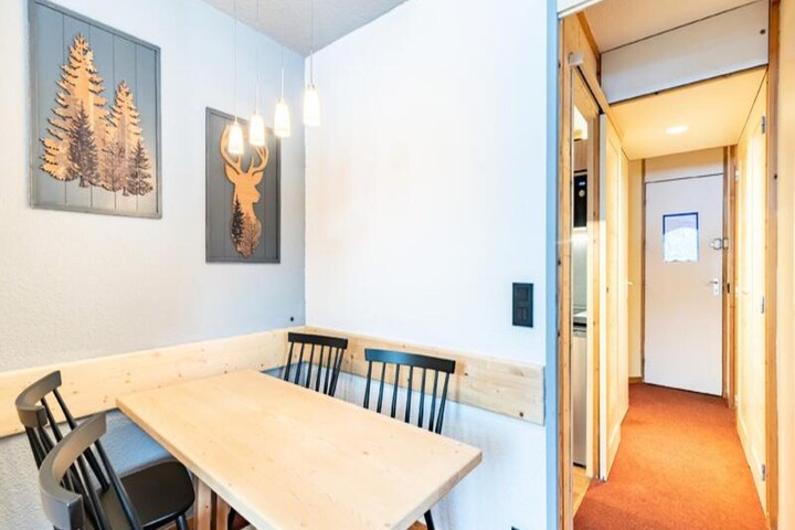 Nestled in the Crève Cœur district of Valmorel, this property offers a cozy ground-floor apartment with direct access to the slopes and hiking trails, ideal for both summer and winter stays. The 32 m² apartment features a living room with two sofa beds, a dining area, a bedroom with a double bed, a bathroom with a bathtub, and a separate WC. The apartment is equipped with a semi-enclosed balcony, a ski locker, a wall-mounted flat-screen TV, and a hairdryer. It offers a west-facing view of the slopes and mountains, making it a perfect retreat for outdoor enthusiasts. Pets are allowed for an additional charge, and WiFi is available for an extra fee.
