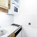 The apartment features a well-equipped kitchen area open to the living room, ideal for guests who prefer to cook their meals. The kitchen includes essential appliances to make self-catering easy and convenient. The apartment’s compact layout includes a bathroom with a bathtub and a separate toilet, ensuring comfort for all guests. While bed linen and bathroom linen come with an extra charge, the accommodation offers value for money with its well-maintained facilities. Additional services such as parking, which requires a reservation, and the option for a daily linen change, can also be arranged. The property is labeled Maeva Home Confort, ensuring that it meets the basic standards of comfort for an enjoyable stay.