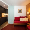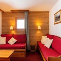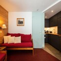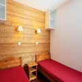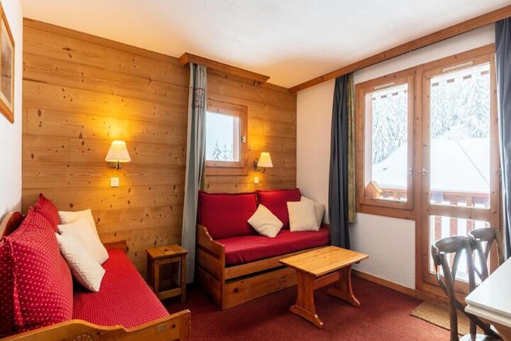 The chalets provide direct access to the slopes in winter and hiking trails in summer, making it an excellent year-round destination for outdoor enthusiasts. The residences are just a short walk from the nearest ski lifts, and the Maeva Home agency and shops are within a 5-minute walk. The apartment features a comfortable living area with a sofa bed and trundle bed (sleeping 3), a well-equipped kitchen, a bedroom with two single beds, a bathroom with a bathtub, and a separate toilet. The balcony is furnished with a table and chair, offering a lovely spot to relax after a day of activities. The property includes useful amenities such as a ski locker and television.