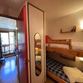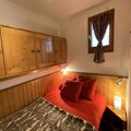The 25 m² apartment is thoughtfully designed for comfort and functionality. It features a cabin-style entrance with bunk beds, a living room with a double sofa bed, and a small bedroom with another double sofa bed, making it ideal for families or small groups. The kitchenette is fully equipped, including a dishwasher, to make meal preparation a breeze. Step out onto the spacious west-facing balcony to soak in the panoramic views of the surrounding peaks, a perfect spot for morning coffee or an evening aperitif. Modern amenities such as a TV and elevator access ensure a convenient and enjoyable stay.