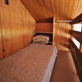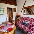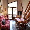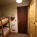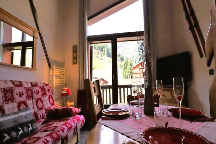 The apartment is thoughtfully designed to combine comfort and practicality. The entrance cabin features two cozy bunk beds, while the mezzanine offers a single bed in an alcove and a double bed in a private bedroom. The living room, complete with a sofa bed, is bathed in natural light from the large bay window, creating a welcoming space to relax after a day of adventure. A well-equipped kitchenette, Wi-Fi, a dishwasher, and even a small washing machine ensure all the conveniences of home. The property also includes a ski and boot room, a garage, and ample storage space for your gear.