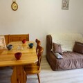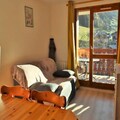 The apartment, situated on the third floor of the Val Blanc I residence, is thoughtfully designed to maximize comfort and functionality. The cozy living room, complete with a kitchenette and dishwasher, opens onto a spacious balcony where you can unwind and soak in the mountain air. The sleeping arrangements include a small bedroom with a double bed, a separate sleeping alcove with bunk beds, and an additional sofa bed in the living room, making it ideal for families or small groups. A bathroom, separate toilet, and a ski locker add to the convenience, while the building’s elevator ensures easy access.