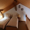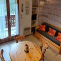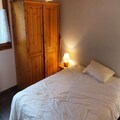 This cozy duplex apartment, located on the first floor of a quiet chalet, accommodates 5 to 6 guests. It features a living room with a kitchenette, a bedroom with a double bed, and a large mezzanine area with three single beds. The apartment offers a bathroom, separate toilet, and heating, perfect for a comfortable stay. Its ideal for families or small groups, with options to rent bed linens, towels, and childcare equipment. A security deposit is required upon arrival, and pets are not mentioned, so it is assumed they are not allowed.