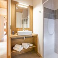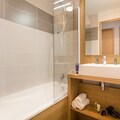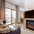 The apartment is equipped with a fully functional kitchenette, allowing guests to prepare their own meals during their stay. The modern bathroom provides essential amenities for added comfort. For relaxation after a day of activities, guests can access the shared spa area, including an indoor heated pool, whirlpool baths, sauna, and steam room, ensuring a rejuvenating and relaxing experience.