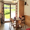 The 26m² studio is thoughtfully designed to accommodate up to five guests, making it perfect for families or small groups. The cabin entrance features a comfortable sofa bed and a single bunk bed, while the living room offers an additional double sofa bed. A well-equipped kitchen, complete with a microwave and dishwasher, ensures you can prepare delicious meals after a day of adventure. The southwest-facing wooden terrace, furnished with garden furniture, a charcoal barbecue, and two deckchairs, is the ideal spot to soak up the sun and enjoy the serene mountain views. Additional amenities include a bathroom, separate toilet, and a ski locker for your convenience.