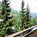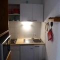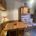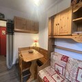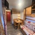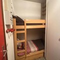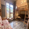 The 25m² apartment, located on the raised ground floor of the Val Blanc II residence, is thoughtfully designed for a comfortable stay. The cabin-style entrance features bunk beds, while the living room includes trundle beds and a fully equipped kitchenette with a dishwasher. An alcove with a double bed and a mezzanine provide additional sleeping arrangements. The west-facing balcony is perfect for soaking in the serene mountain views after a day of exploration. Guests can also enjoy the shared swimming pool during the summer months, adding a refreshing touch to their alpine getaway.