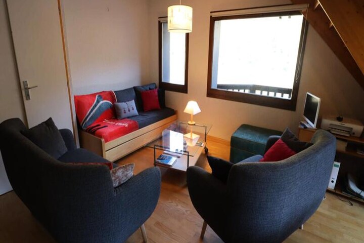 High above the charming village of Arèches, this spacious duplex offers a serene alpine retreat with breathtaking views from its sunny slope. Imagine mornings spent sipping coffee on the balcony as the sunlight dances across the valley, or evenings relaxing in the garden surrounded by crisp mountain air. Whether you're seeking adventure or tranquility, this chalet-style property provides the perfect balance of comfort and convenience for your holiday escape. \n\nDesigned to accommodate up to 9 guests, this 70 m² duplex boasts a bright and airy living room, a fully equipped kitchen with modern appliances, and a cozy master bedroom on the main level. Upstairs, two additional bedrooms offer flexible sleeping arrangements, complete with a shower and sink for added convenience. The property also features a garage, parking space, and internet access, ensuring a seamless stay. With thoughtful amenities like a dishwasher, washing machine, and optional linen rentals, every detail has been considered to make your visit stress-free. \n\nLocated just five minutes by car from the Grand Mont slopes and a short ten-minute walk to the village center, you'll have easy access to skiing, local shops, and restaurants. A free shuttle bus departs nearby, making it simple to explore the area without hassle. In summer, the region transforms into a haven for hiking, cycling, and discovering the natural beauty of the French Alps. \n\nWhether you're planning a winter ski adventure or a summer getaway, this duplex invites you to create unforgettable memories in the heart of the mountains. With its idyllic location and warm, inviting atmosphere, it's the perfect base for your alpine escape.