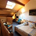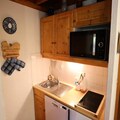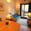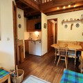 Spanning 45 square meters, this duplex is thoughtfully designed to accommodate 4 to 5 guests. The cozy living room opens onto a loggia balcony, providing a warm and inviting space to relax after a day of adventures. The kitchenette is fully equipped with an oven, fridge, microwave, dishwasher, and induction hob, making it easy to prepare hearty meals. The sleeping arrangements include a small bedroom with bunk beds, a spacious mezzanine with a comfortable double bed and office space, and a single sofa in the living room. Additional amenities such as a TV, ski locker, and access to an elevator ensure a convenient and enjoyable stay.