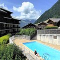 In the heart of a charming alpine village, this cozy and functional 27m² apartment offers a delightful retreat for up to four guests. With its prime location just steps from the ski slopes and surrounded by the vibrant village atmosphere, it’s the perfect base for both winter and summer adventures. Imagine waking up to the crisp mountain air, stepping onto your east-facing balcony with a cup of coffee, and soaking in the stunning views of the village and surrounding peaks. During the summer months, a private swimming pool adds an extra touch of relaxation to your stay. \n\nThe apartment is thoughtfully designed to maximize comfort and convenience. The entrance features a closed cabin with two single bunk beds, ideal for children or friends. The living area is bright and inviting, complete with a double sofa, TV, and a well-equipped kitchenette that includes a dishwasher. A separate cozy bedroom with a double bed ensures restful nights, while the bathroom and separate toilet add practicality to the layout. The balcony, furnished with garden seating, is perfect for enjoying meals or simply unwinding after a day of exploration. Additional amenities include free parking, an elevator, and optional services such as linen rental and discounted ski passes.\n\nBeyond the apartment, the village offers a wealth of activities and attractions. In winter, the proximity to the ski slopes makes it a haven for snow enthusiasts, while summer transforms the area into a paradise for hikers and nature lovers. Nearby shops, restaurants, and cultural events ensure that your stay is as lively or as tranquil as you desire. Whether you’re here for the thrill of skiing or the serenity of alpine summers, this apartment promises a memorable getaway in the heart of the French Alps.