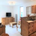 Step inside to discover a spacious and welcoming interior. The apartment features two inviting bedrooms, one with direct access to a balcony where you can soak in the mountain air. The living area is thoughtfully arranged, with a well-equipped kitchen opening onto both the dining room and a second balcony. Additional sleeping options include a single bed with a pull-out trundle in the living room. Modern amenities such as a separate bathroom, toilet, and a private cellar for ski or bike storage ensure a hassle-free stay.