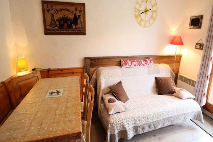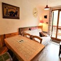 High above the picturesque village of Arêches-Beaufort, this charming alpine apartment invites you to experience the serenity and adventure of the French Alps. With its west-facing balcony offering sweeping views of lush mountain pastures, this cozy retreat is perfect for a family or group of up to five seeking a memorable getaway in both summer and winter seasons. Whether you're here to ski the pristine slopes or explore the tranquil trails, this location promises an unforgettable escape into nature's embrace. \n\nThe apartment is thoughtfully designed for comfort and functionality, featuring a cabin entrance with bunk beds, a bright living room with a sofa bed, and a small bedroom with a cozy double bed. The kitchenette is fully equipped, including a dishwasher, making meal preparation a breeze after a day of alpine adventures. The bathroom and separate toilet add convenience, while the residence itself boasts a private swimming pool available during the summer months. Located on the third floor with elevator access, this property ensures ease and relaxation throughout your stay. \n\nJust a short walk from the ski slopes and the village center, you'll find everything you need within reach. From local shops and restaurants to ski rentals and hiking trails, Arêches-Beaufort offers a warm and welcoming atmosphere for visitors year-round. In summer, the region transforms into a haven for outdoor enthusiasts, with opportunities for cycling, climbing, and discovering the breathtaking landscapes of the Beaufortain massif. \n\nWhether you're savoring the fresh alpine air on your balcony or exploring the charming streets of the village, this apartment is your gateway to the best of the French Alps. Let the beauty of Arêches-Beaufort inspire your next adventure and create lasting memories in this idyllic mountain retreat.