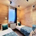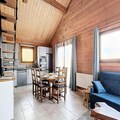 Spanning 75 m², this newly built chalet (2024) comfortably accommodates up to six guests. The bright and spacious living area is ideal for cozy evenings, featuring a dining table for six, a plush sofa, and a TV. The open-plan kitchen is fully equipped with modern appliances, including a ceramic hob, oven, microwave, dishwasher, and even raclette and fondue sets for authentic French dining experiences. The chalet boasts two bedrooms—one with a double bed and space for a baby cot, and another with two single beds—plus a mezzanine with two additional single beds that can be joined to form a double. A shower room with a hairdryer and a children’s corner on the mezzanine ensure comfort for all ages.
