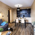 The residence boasts spacious, fully equipped apartments with a cozy mountain-inspired ambiance. Each unit features a living room with a convertible sofa, two bedrooms with flexible bedding options, two bathrooms, and a balcony or terrace to soak in the breathtaking views. The heated indoor/outdoor pool, complete with a south-facing terrace, invites you to unwind after a day of adventure, while the Aquarelaxing area and sauna provide the ultimate relaxation. Families will love the dedicated kids' clubs for ages 4 to 17, ensuring fun and camaraderie for the little ones, while adults can enjoy the warm atmosphere of the lounge with its fireplace and bar.