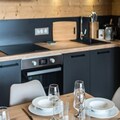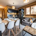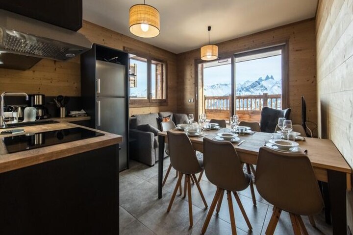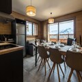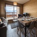 The apartment features a living room opening onto a balcony and a sublime view of the Aiguilles d'Arves. The living room offers a lounge/dining area and a fully equipped kitchen. The sleeping area includes two double bedrooms, a sleeping area with a bunk bed (the upper bunk is not suitable for children under 6 years old), and two bathrooms.