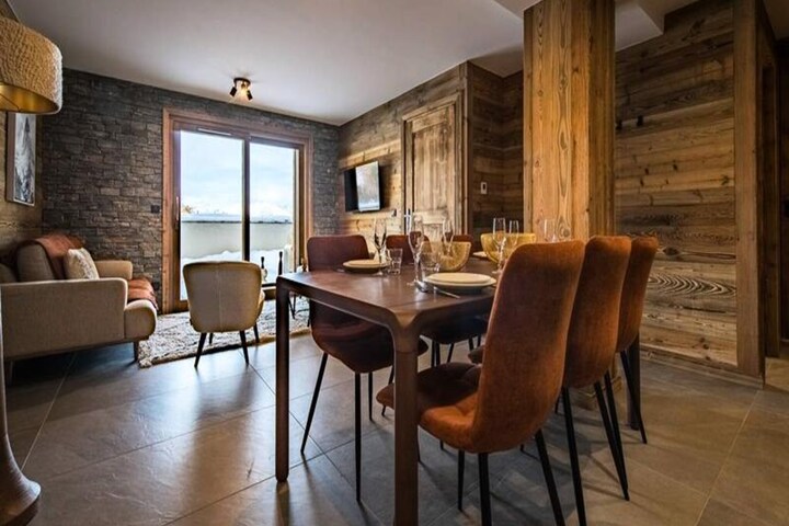 In the heart of La Toussuire, where the snowy slopes meet the charm of a vibrant alpine village, this elegant apartment offers a perfect blend of comfort and convenience. Imagine stepping out of your door onto the snow front, ready to ski directly onto pristine trails or stroll to nearby shops for a taste of local delights. Completed in summer 2024, the Les Airelles residence is a modern haven designed for unforgettable mountain escapes. \n\nSpanning 51m², this thoughtfully designed apartment exudes warmth with its high-quality materials and inviting decor. The living room opens onto a spacious 30m² terrace facing east, where you can soak in the crisp mountain air and stunning views. A fully equipped kitchen, dining area, and cozy lounge create a welcoming space for relaxation and shared moments. The apartment features two double bedrooms, one with an en-suite bathroom, and a sleeping alcove with bunk beds perfect for children. A second bathroom ensures convenience for all guests. Additional amenities include a ski locker with a boot dryer, Wi-Fi, and included bed and bathroom linens, making your stay effortless and enjoyable. \n\nBeyond the apartment, La Toussuire offers a wealth of activities and attractions. Ski lift passes and lesson cards are delivered directly to your door, ensuring a seamless start to your adventures. With discounted rates available for early bookings, you can explore the expansive slopes or enjoy summer hikes and cycling trails. The resort’s lively center, just steps away, is brimming with restaurants, shops, and après-ski options to complete your alpine experience. \n\nWhether you’re seeking thrilling days on the slopes or tranquil evenings under the stars, this apartment is your gateway to the magic of the French Alps. Book now and create cherished memories with family and friends in this idyllic mountain retreat.
