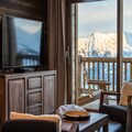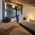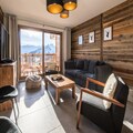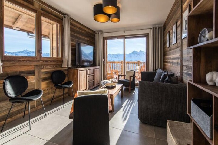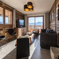 High above the bustling resort, where the majestic peaks of Aiguilles d'Arves and La Meije paint the horizon, lies the Odyssée residence—a haven for ski enthusiasts and mountain lovers alike. Imagine waking up to the sun's golden rays streaming through your south-facing windows, stepping onto your balcony to breathe in the crisp alpine air, and gazing at panoramic views that inspire adventure and tranquility in equal measure. This is where unforgettable memories are made, surrounded by the beauty of the French Alps. \n\nThe apartment, spanning 88m², is a masterpiece of warm, rustic charm with old wood and stone accents. Designed to accommodate up to eight guests, it features a spacious living room that opens onto a balcony with breathtaking views. The fully equipped kitchen and cozy lounge/dining area invite you to share meals and moments with loved ones. The first floor boasts a queen-size bedroom with its own bathroom and TV, while upstairs, two additional bedrooms—one with three single beds and a trundle bed, and another with a queen-size bed and TV—ensure comfort for all. Modern amenities like Wi-Fi, a ski locker with boot dryer, and reserved parking spaces add to the convenience, while end-of-stay cleaning and linen rentals are included for a stress-free experience. \n\nStep outside, and the slopes are at your doorstep. Ski in and ski out access means you’re seconds away from the snow front and main lifts, while a nearby shuttle stop ensures easy exploration of the resort. Pedestrian access is facilitated by a staircase, making it simple to reach shops, restaurants, and après-ski activities. Whether you’re here for winter sports or summer hikes, the region offers endless opportunities for adventure and relaxation. \n\nBook now with Altitude 1750 and enjoy exclusive perks like discounted lift passes and ski equipment rentals when reserved in advance. Let the Odyssée residence be your gateway to the magic of the Alps—a place where every moment feels extraordinary.