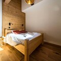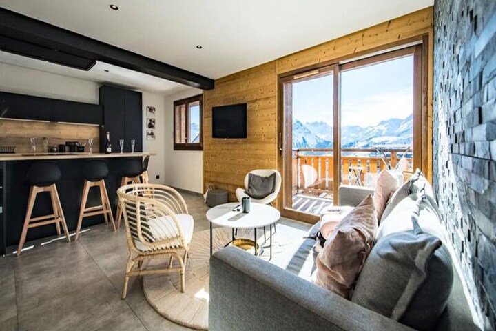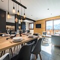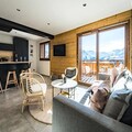 High above the Tarentaise Valley, where the crisp alpine air invigorates the senses, Sylodges Residence welcomes you to a modern retreat designed for mountain enthusiasts. Apartment 201, perched on the first floor, offers sweeping views of the majestic peaks, promising a stay filled with tranquility and adventure. With direct ski-in/ski-out access to the Soleil slope and the Soleil chairlift just moments away, your alpine escapades begin right at your doorstep. Whether you're carving through fresh powder or exploring summer trails, this residence is your gateway to the beauty of the French Alps. \n\nStep inside to discover a spacious, thoughtfully designed apartment that blends contemporary comfort with warm mountain charm. The open-plan living area features a cozy lounge, a dining space perfect for shared meals, and a fully equipped kitchen with modern appliances including an induction hob, oven, microwave, and dishwasher. The sleeping arrangements cater to up to eight guests, with a master suite boasting a private bathroom and balcony access, a double bedroom, and a family room with a double bed and bunk beds. Additional amenities include a shared shower room, a laundry area, and a separate toilet, ensuring convenience for all guests. \n\nLocated in the heart of the Alps, Sylodges Residence offers easy access to ski schools, equipment rentals, and lift passes, with exclusive discounts for guests. In summer, the region transforms into a haven for hikers and cyclists, with breathtaking trails and panoramic vistas. After a day of adventure, unwind in the comfort of your apartment or take in the serene mountain views from your balcony. \n\nWhether you're seeking thrilling winter sports or peaceful summer escapes, Apartment 201 at Sylodges Residence is the perfect choice for creating unforgettable memories in the French Alps.