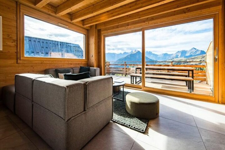 High above the serene alpine landscapes of Saint-Sorlin-d'Arves, PEAK Lodge East invites you to experience the perfect blend of luxury and comfort. With its south-facing orientation, this elegant chalet bathes in natural light, offering uninterrupted 180° views of the majestic Aiguilles d'Arves. Whether you're seeking a winter wonderland or a summer retreat, this property promises an unforgettable escape for families and friends alike.