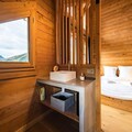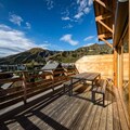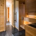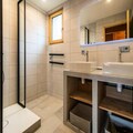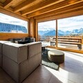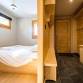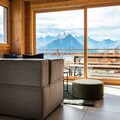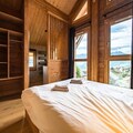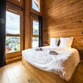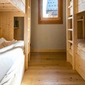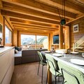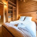 Step into a world of sophistication as you enter the chalet from the garden level, where a secure outdoor ski closet and boot dryers for 12 pairs ensure convenience after a day on the slopes. The ground floor features a cozy double bedroom, a dormitory with two bunk beds (sleeps 4), a modern bathroom with double sinks, a separate toilet, a laundry room, and a rejuvenating sauna. The spacious living area on the same level opens onto a sunlit terrace, where breathtaking mountain views await. The fully equipped kitchen, complete with a dishwasher, induction hob, oven, and microwave, makes preparing meals a delight, while the inviting seating and dining areas provide the perfect setting for relaxation.