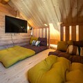 Step inside and discover a thoughtfully designed space that caters to every need. The chalet spans three levels, starting with a garden-level entrance featuring secure ski storage and boot dryers for up to 12 pairs. The ground floor boasts a cozy double bedroom, a dormitory with two bunk beds (sleeps 4), a modern bathroom with double sinks, a separate toilet, a laundry room, and a rejuvenating sauna. The heart of the home is the spacious living area, where a fully equipped kitchen, dining room, and TV lounge open onto a sunlit terrace with panoramic views. Upstairs, the master suite offers its own bathroom and a private south-facing balcony, while additional bedrooms and a mezzanine dormitory provide ample sleeping space for up to 12 guests.
