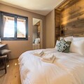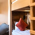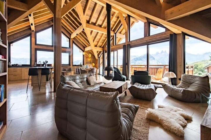 High above the snowy slopes of Comborcière, this luxurious chalet invites you to experience an alpine retreat like no other. Imagine waking up to a panoramic 180° view of the majestic peaks, stepping out onto the terrace to breathe in the crisp mountain air, and skiing directly to the snow front within minutes. Perfectly positioned on the slopes and just a short distance from the resort center, this elegant property combines convenience with breathtaking natural beauty, offering an unforgettable escape for families and groups of up to 14 guests. Two reserved outdoor parking spaces and nearby shuttle stops ensure seamless access to the surrounding area. \n\nLe Cocon is designed with warmth and sophistication, featuring high-quality amenities and a south-facing orientation that floods the interiors with natural light. The entrance doubles as a ski room, equipped with a 14-pair boot dryer and ski racks to keep your gear secure and ready for adventure. On the ground floor, four individually decorated bedrooms boast private bathrooms, TVs, heated towel rails, and ample storage. Two of these rooms face south, while the other two enjoy an eastern view. Additionally, a dormitory with six cozy bunk beds provides a perfect haven for children, complete with its own bathroom, closets, and television. \n\nThe upper level is the heart of the chalet, where a spacious living room opens onto a terrace with awe-inspiring views. Here, you’ll find a lounge area with a fireplace, a dining space, and a fully equipped kitchen ready for culinary creations. The garden level adds a touch of indulgence with a sauna, laundry facilities, and an extra bathroom. End-of-stay cleaning, bed linen, and towels are included, ensuring a stress-free stay. \n\nWhether you’re skiing down pristine slopes, relaxing by the fire, or exploring the vibrant resort center, Le Cocon promises unforgettable moments in the heart of the French Alps. Book now and let the magic of the mountains create memories to last a lifetime.