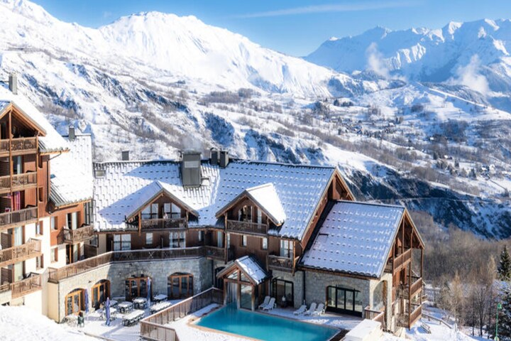 Amidst the breathtaking alpine scenery of Le Corbier, this charming residence offers a perfect blend of comfort and convenience for your mountain escape. Just 50 meters from the Milky Way chairlift and 300 meters from the resort center, Goélia Les Alpages du Corbier*** invites you to immerse yourself in the beauty of Les Sybelles, France’s fourth-largest ski area with 310 km of slopes. Whether you’re a seasoned skier or a first-timer, the family-friendly atmosphere and ski-in/ski-out access make this destination ideal for all ages. \n\nThe residence boasts traditional mountain architecture across three chalets, creating a warm and inviting ambiance. Inside, you’ll find thoughtfully designed accommodations, including a living room with a pull-out sofa bed, a fully equipped kitchen, and cozy bedrooms. Relaxation is at your fingertips with a heated outdoor swimming pool, sauna, and fitness area. For added convenience, outdoor and covered parking is available, and a municipal shuttle stop is just 100 meters away, ensuring easy access to the resort’s amenities. \n\nLe Corbier is a haven for families, offering a Snow Garden for young children to enjoy their first ski lessons under expert guidance. Non-skiers can take advantage of the Voie Lactée and Sybelles Express chairlifts to explore the Plateau de la Verne, indulge in mountain dining, or simply savor the fresh alpine air. The Galaxie Spa Relaxation Area, featuring a heated pool, sauna, hammam, and hot tubs, adds a touch of luxury to your stay. \n\nWhether you’re seeking thrilling slopes, serene hikes, or a cozy retreat, Goélia Les Alpages du Corbier*** promises an unforgettable alpine experience tailored to your desires.