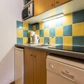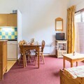 Spanning 40 m², this thoughtfully designed apartment comfortably accommodates up to eight guests. The main living area features a cozy sofa bed, a flat-screen TV, and direct access to a sunny balcony where you can soak in the stunning alpine scenery. The kitchenette is fully equipped with modern appliances, including a ceramic hob, microwave, refrigerator, dishwasher, and coffee maker, making it easy to prepare hearty meals after a day on the slopes. The layout includes a private bedroom with a double bed and wardrobe, a bathroom with a separate toilet, and an upstairs area with two bunk beds and an additional sleeping nook with two more bunk beds—ideal for families or groups of friends.