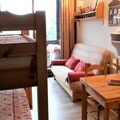 Step inside this thoughtfully designed 22m² studio, where mountain-inspired decor creates a warm and inviting atmosphere. The living area features a comfortable sofa bed for two and bunk beds, making it ideal for families or small groups. The kitchenette is equipped with everything you need to prepare hearty meals after a day of exploration, including electric hobs, a microwave, a coffee maker, and a toaster. Modern conveniences such as a television and access to a heated swimming pool ensure a relaxing stay. Additional services like linens, Wi-Fi, and end-of-stay cleaning are available for your convenience.