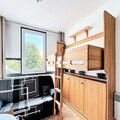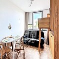 Designed for up to three guests, this well-maintained 16m² studio is thoughtfully equipped for comfort and convenience. The living area features a sofa bed and a single bunk bed, complemented by a flat-screen television for cozy evenings in. The kitchenette includes all the essentials, from a two-burner ceramic hob to a microwave, electric coffee maker, and even raclette and fondue sets for enjoying local culinary traditions. A bathroom with a toilet and a storage cupboard complete the layout, ensuring a practical and pleasant stay. Guests also have complimentary access to the residence's heated swimming pool, perfect for relaxing after a day on the slopes.