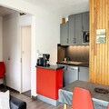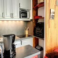 In the heart of the bustling resort, this charming apartment in Baïkonour Residence offers the perfect alpine escape with breathtaking views of the slopes and ski-in/ski-out convenience. Imagine waking up to the sight of snow-dusted peaks, stepping onto your private balcony to breathe in the crisp mountain air, and heading straight to the Sybelles Express chairlift just outside your door. Whether you're here for winter thrills or summer serenity, this residence places you at the center of it all. \n\nInside, the apartment’s thoughtful design ensures comfort and practicality for up to six guests. The spacious living room invites you to unwind with its cozy sofa, flat-screen TV, and dining area for six, while the fully equipped kitchenette makes meal preparation a breeze. With a mini-oven, microwave, ceramic hob, dishwasher, and Nespresso® machine, every detail has been considered. The sleeping arrangements include a double bed in the master bedroom, bunk beds in the second bedroom, and two single beds in the alcove, ensuring restful nights for everyone. A modern bathroom with a bathtub adds to the convenience, while the ski locker and access to a heated swimming pool enhance your stay. \n\nStep outside to explore the resort’s vibrant atmosphere. The shopping arcade at the foot of the residence offers everything from ski rentals to local delicacies, while the ski school is just 20 meters away, making it ideal for families and beginners. In summer, the slopes transform into scenic hiking trails, inviting you to discover the beauty of the Alps. \n\nWhether you're chasing powder or seeking tranquility, this apartment combines unbeatable location, modern amenities, and alpine charm for an unforgettable getaway.