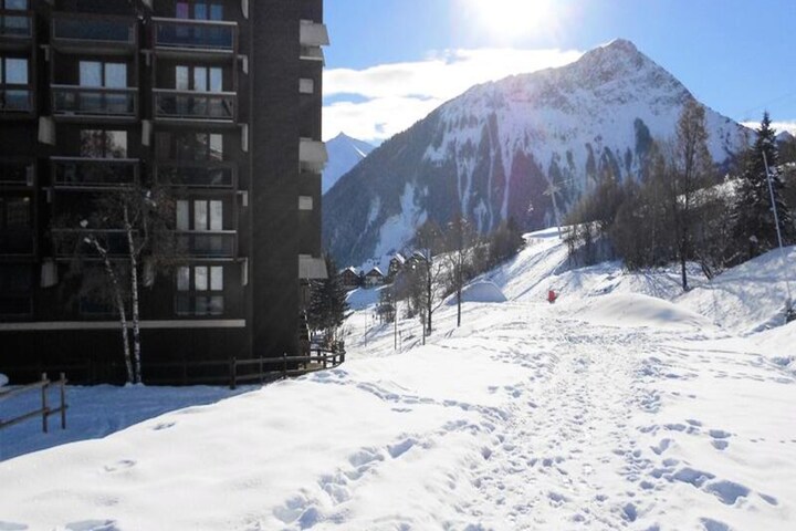 Guests can enjoy access to a heated swimming pool, perfect for unwinding after skiing or exploring the nearby trails. The residence also offers outdoor parking, ski lockers, and three elevators for added ease. With a mini-market, playground, and caterer nearby, you’ll find everything you need within reach. Whether you’re here for the thrill of the slopes or the tranquility of the mountains, this apartment promises an unforgettable alpine retreat.