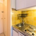 The 16m² studio is thoughtfully designed to accommodate 2 to 3 guests, making it ideal for couples or small families. The living area features a comfortable double sofa bed and a single bed, complemented by a flat-screen TV for cozy evenings in. The kitchenette is equipped with essential appliances, including electric hobs, a toaster, and a coffee maker, allowing you to prepare hearty meals after a day on the slopes. The bathroom is compact yet functional, and the entrance hall offers convenient storage with a built-in closet. From the window, enjoy stunning vistas of the surrounding mountains and valley, a view that will leave you inspired every morning.