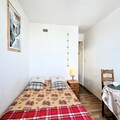 Designed for two, the studio features a comfortable double bed, a well-equipped kitchenette with a ceramic hob, microwave, coffee maker, and kettle, as well as a bathroom with a toilet. The thoughtful layout ensures a relaxing stay, while the east-facing window fills the space with natural light. For added convenience, the residence includes a ski locker, outdoor parking, and access to a heated swimming pool, perfect for unwinding after a day on the slopes.
