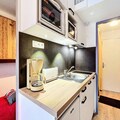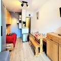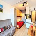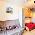 High above the majestic slopes of Le Corbier, this charming studio apartment offers a cozy retreat for those seeking a perfect alpine getaway. With breathtaking views from its south-facing balcony, you’ll wake up to the serene beauty of the mountains and enjoy ski-in/ski-out access right at your doorstep. Whether you’re here for the thrill of skiing or the tranquility of the French Alps, this residence promises an unforgettable experience for families and couples alike. \n\nInside, the 22m² studio is thoughtfully designed to maximize comfort and functionality. The living area features a sofa bed for two and two single bunk beds, ensuring a restful stay for up to four guests. The renovated kitchenette is equipped with modern appliances including a ceramic hob, mini-oven, microwave, dishwasher, and raclette grill—perfect for preparing delicious meals after a day on the slopes. Additional amenities such as a flat-screen TV, washing machine, hairdryer, and free Wi-Fi ensure a convenient and relaxing stay. Guests also have access to a heated swimming pool, adding a touch of luxury to their alpine adventure. \n\nLocated in the Soyouz Residence, this property is ideally situated near key facilities. A children’s playground is just opposite, while a supermarket, delicatessen, and daycare are within walking distance. The ESF ski school is only 200 meters away, making it an excellent choice for families with young skiers. Outdoor parking and ski lockers add to the convenience, ensuring a hassle-free holiday. \n\nWhether you’re here to carve through pristine slopes, explore the charming village, or simply unwind in the crisp mountain air, this studio apartment is your gateway to the wonders of Le Corbier. Create lasting memories in this idyllic alpine setting, where adventure and relaxation meet.
