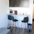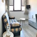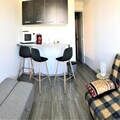 Awaken to the serene beauty of the French Alps in this charming studio apartment, perfectly situated in the Zodiaque Residence of Les Arcs 1800. With breathtaking mountain views from the sixth floor and ski-in/ski-out access, this cozy retreat offers an unparalleled alpine experience. Whether you're here for winter adventures or summer escapes, the location places you steps away from the snow front, ski lifts, and a vibrant array of local amenities. The residence is ideal for couples seeking a tranquil yet convenient getaway amidst the majestic peaks of the Tarentaise Valley. \n\nInside, the studio has been thoughtfully renovated to provide modern comfort and style. The 16m² space features a welcoming living area with a plush sofa bed, a flat-screen television, and a well-equipped kitchenette with a ceramic hob, microwave, and electric coffee maker. The sleek shower room adds a touch of luxury, ensuring a refreshing start to your day. While there is no balcony, the east-facing windows frame stunning views of the surrounding mountains, inviting you to soak in the alpine ambiance. Guests also enjoy access to a heated swimming pool, adding a relaxing dimension to their stay. \n\nThe Zodiaque Residence boasts convenient amenities such as ski lockers, outdoor parking, and proximity to shops, restaurants, and the ESF ski school. Families will appreciate the nearby daycare center and children's playground, while adventurers can explore the extensive Paradiski domain. In summer, the area transforms into a haven for hiking, biking, and nature excursions. \n\nWhether you're carving through pristine slopes or basking in the summer sun, this studio is your gateway to unforgettable alpine memories. Let the charm of Les Arcs 1800 and the comforts of this residence create the perfect backdrop for your mountain escape.