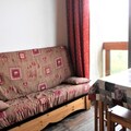 The thoughtfully designed 25 m² apartment comfortably accommodates up to five guests. It features a well-equipped kitchenette with a two-burner electric hob, Senseo coffee machine, and fondue set, making it easy to prepare meals after a day on the slopes. The living room includes a double sofa bed, flat-screen TV, and dining table for five, while the separate bedroom offers a double bed and a mezzanine bed, ensuring a restful night's sleep. The bathroom is equipped with a bathtub, sink, and toilet, providing all the essentials for a comfortable stay. Guests also have access to free Wi-Fi and a heated swimming pool, adding extra touches of luxury to their alpine escape.