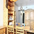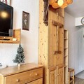 Inside, the 22m² studio is thoughtfully designed to maximize comfort and functionality. The living area features a plush 160cm sofa bed, two cozy bunk beds, and a flat-screen TV, creating a welcoming space to unwind after a day on the slopes. The kitchenette is fully equipped with modern appliances, including a ceramic hob, dishwasher, microwave, and even a raclette grill for authentic alpine dining. A south-facing balcony invites you to soak in the sun and the stunning mountain vistas, while free Wi-Fi keeps you connected throughout your stay. Guests also have complimentary access to the heated swimming pool, perfect for relaxing after a day of skiing or hiking.