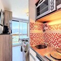 The apartment, located on the 18th floor, is thoughtfully designed for up to five guests. Its double balcony provides stunning panoramic views, while the interior combines modern comfort with alpine charm. The living room features a comfortable sofa bed, a flat-screen TV, and a dining table for five, perfect for cozy evenings after a day on the slopes. The kitchenette is well-equipped with essentials like a Senseo coffee machine, microwave, and toaster, ensuring you can prepare meals with ease. The bedroom offers a double bed and a single bunk bed, making it ideal for families or small groups. A bathroom with a bathtub and a washing machine adds convenience to your stay.