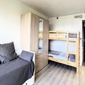 High above the shimmering Tarentaise Valley, this charming studio apartment offers a cozy retreat for alpine adventurers. Situated on the 19th floor of the Le Vanguard residence, guests are treated to breathtaking north-facing views of the surrounding mountains, creating the perfect backdrop for a memorable holiday. Whether you’re here for skiing, hiking, or simply relaxing, this residence places you at the heart of the action with ski-in/ski-out access and proximity to essential facilities. \n\nRecently renovated, the 22m² studio is thoughtfully designed to accommodate up to four guests. The entrance hall features a large closet for convenient storage, while the kitchenette is fully equipped with modern appliances including an induction hob, microwave, mini-oven, and more—ideal for preparing meals after a day on the slopes. The living room boasts a pull-out bed, bunk beds, a flat-screen TV, and a folding table, ensuring both comfort and functionality. Guests can enjoy free Wi-Fi throughout the building and access to a heated swimming pool, perfect for unwinding after outdoor adventures. \n\nFamilies will appreciate the nearby children’s daycare and playground, while the ESF ski school is just 200 meters away, making this location ideal for young skiers. A mini-market, caterer, and shopping arcade are within walking distance, ensuring you have everything you need at your fingertips. Pets are welcome under certain conditions, adding to the convenience of this alpine escape. \n\nWhether you’re seeking thrilling ski days or tranquil evenings soaking in the mountain views, this studio apartment is your gateway to the best of the French Alps. Book your stay and create unforgettable memories in this picturesque setting.