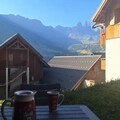 The first bedroom includes a queen-sized bed (160x200 cm), while the second offers two single beds (90x190 cm). In addition, the mountain corner has two bunk beds (90x190 cm), and a sofa bed in the living room provides extra sleeping options. The bathroom is equipped with a bathtub, ideal for unwinding after a day of outdoor activities. Independent toilets ensure added convenience. Enjoy the fresh mountain air on the outdoor terrace, complete with a table and chairs for two, where you can relax while taking in the breathtaking views of the Aiguilles d'Arves.