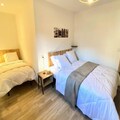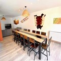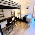 The apartment is equipped with a semi-open kitchen, including essential appliances like a fridge, oven, and stovetop, as well as a dining table with seating for four. Additional amenities include a television with on-demand video services and Wi-Fi (for an extra charge). Guests also benefit from included bed linens, towels, and end-of-stay cleaning.