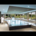 Living room(double sofa bed, TV, fireplace, seating area), open kitchen(hob(ceramic), electric kettle, coffee machine, oven, microwave, dishwasher, fridge, dishes and cutlery), bedroom(double bed), bedroom(double bed), bedroom(single bed, single bed), bathroom(bathtub or shower), bathroom(bathtub or shower), sauna, swimming pool(shared with other guests, indoor), hairdryer