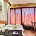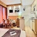 Inside, the 30m² space is thoughtfully designed to maximize comfort and functionality. The living room features a trundle bed for two, while a separate sleeping area offers cozy bunk beds, making it ideal for families or small groups. The kitchenette, equipped with an electric stovetop, refrigerator, dishwasher, and microwave, allows you to prepare meals with ease. After an active day outdoors, unwind in the inviting living space with a television or soak in the bathtub to rejuvenate. Additional conveniences include a ski locker for your gear and the option to rent bed linen and towels for a hassle-free stay.