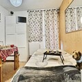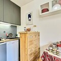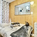 Step inside this well-maintained 26m² apartment, thoughtfully designed to accommodate up to four guests. The living area features a comfortable double sofa bed, while a separate sleeping nook offers bunk beds, ideal for families or close friends. The kitchenette, equipped with modern appliances including a dishwasher, oven, and microwave, invites you to prepare hearty meals after a day of exploration. A cozy living space with a television ensures your evenings are as enjoyable as your days. The apartment also includes a bathroom with a bathtub and a separate toilet for added convenience.