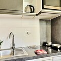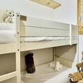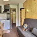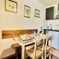 Designed for comfort and functionality, this 30m² apartment accommodates up to four guests. The living area features a plush sofa bed for two, while a cozy sleeping nook offers a set of bunk beds, perfect for families or small groups. The open-plan kitchenette is fully equipped with modern appliances, including an oven, microwave, dishwasher, and refrigerator, making it easy to prepare hearty meals after a day of alpine adventures. A bathroom with a bathtub and a separate toilet adds to the convenience, while a ski locker ensures your gear is always ready for the next outing.