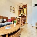Step inside this functional 30m² apartment, thoughtfully designed to accommodate up to four guests. The living room features a set of trundle beds, while a separate sleeping area also offers trundle beds, ensuring a comfortable stay for families or small groups. The semi-open kitchen is equipped with electric hobs, an oven, a dishwasher, and a refrigerator, making it easy to prepare meals after a day on the slopes. A bathroom with a bathtub and a separate toilet adds to the convenience, while the apartment’s television and ski locker enhance your stay.