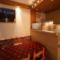High above the shimmering waters of Tignes Le Lac, this cozy studio on the 8th floor of the Residence LE PALAFOUR invites you to experience the ultimate alpine getaway. With ski-in/ski-out access, you can step directly onto the slopes of one of Europe’s most celebrated ski destinations. As you gaze out from the south-facing balcony, the breathtaking view of the lake and surrounding peaks sets the tone for a memorable stay at 2,100 meters above sea level. Whether you’re here for winter sports or summer adventures, this location offers year-round excitement. \n\nThe studio, thoughtfully renovated, comfortably accommodates up to four guests. Its clever layout includes two bunk beds in the entrance and a trundle bed in the living room, separated by a door for added privacy. The kitchenette is equipped with ceramic hobs, a refrigerator, oven, toaster, kettle, and dishwasher, making it easy to prepare meals after a day of exploration. A TV and a bathroom with a bathtub, sink, and toilet complete the amenities, ensuring a relaxing and convenient stay. \n\nSituated in the heart of Tignes Le Lac, the residence boasts direct access to a shopping mall featuring sports shops, ski schools, a supermarket, a bakery, and vibrant bars and restaurants. Just 50 meters away, the LE LAGON water park offers wellness and leisure facilities, while the TIGNESPACE complex, 100 meters away, provides cultural and sports activities for all ages. \n\nWhether you’re carving through fresh powder, hiking alpine trails, or simply soaking in the stunning scenery, this studio is the perfect base for your mountain escape. Let the charm of Tignes and the convenience of Residence LE PALAFOUR create unforgettable memories for your next holiday.